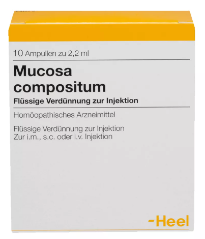 İnyeksiya üçün məhlul: 2,2 ml tərkibində: Mucosa nasalis suis D8, Mucosa oris suis D8, Mucosa pulmonis suis D8, Mucosa oculi suis D8, Mucosa vesicae felleae suis D8, Mucosa vesicae urinariae suis D8, Mucosa pylori suis D8, Mucosa duodeni suis D8, Mucosa oesophagi suis D8, Mucosa jejuni suis D8, Mucosa ilei suis D8, Mucosa coli suis D8, Mucosa recti suis D8, Mucosa ductus choledochi suis D8, Ventriculus suis D8, Pankreas suis D10, Argentum nitricum D6, Atropa belladonna D10, Oxalis acetosella D6, Semecarpus anacardium D6, Phosphorus D8, Lachesis mutus D10, Cephaelis ipecacuanha D8, Strychnos nux-vomica D13, Veratrum album D4, Pulsatilla pratensis D6, Kreosotum D10, Sulfur D8, Natrium diethyloxalaceticum D8, Marsdenia cundurango D6, Kalium bichromicum D8, Hydrastis canadensis D4, Mandragora e radice siccata D10, Momordica balsamina D6, Ceanothus americanus D4-hərəsindən 22 mq.